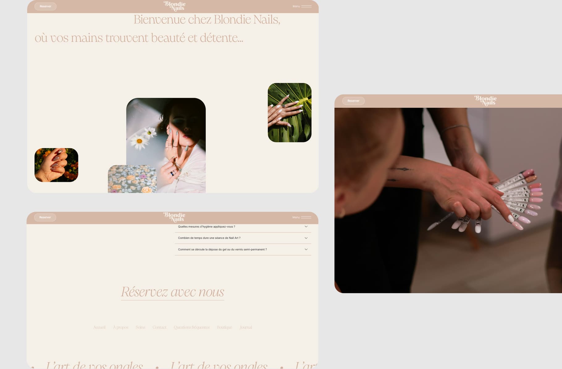The interface reflects the Blondie Nails brand identity while delivering a smooth, responsive experience across all devices. Special attention was given to layout, typography, and user flow to ensure an elegant and intuitive digital presence.